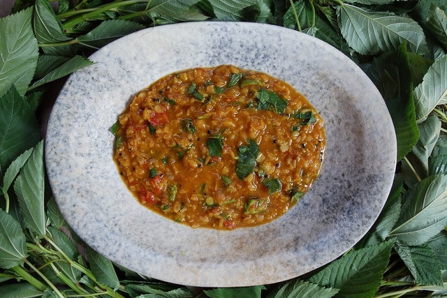 モロヘイヤのダールカレー まだまだ厳しい暑さ そんな気候に応えるように、エジプト原産の「モロヘイヤ」 が豊かに育っているようです マスールダール(赤レンズ豆) のやさしいとろみと、モロヘイヤ特有の“粘り”が溶け合った一皿 暑さで疲れた身体にぴったりです 〈原材料〉 モロヘイヤ(千葉県)、赤レンズ豆、玉ねぎ、トマト、にんにく、生姜、青唐辛子、香辛料(コリアンダー、ターメリック、マスタードシードなど)、岩塩