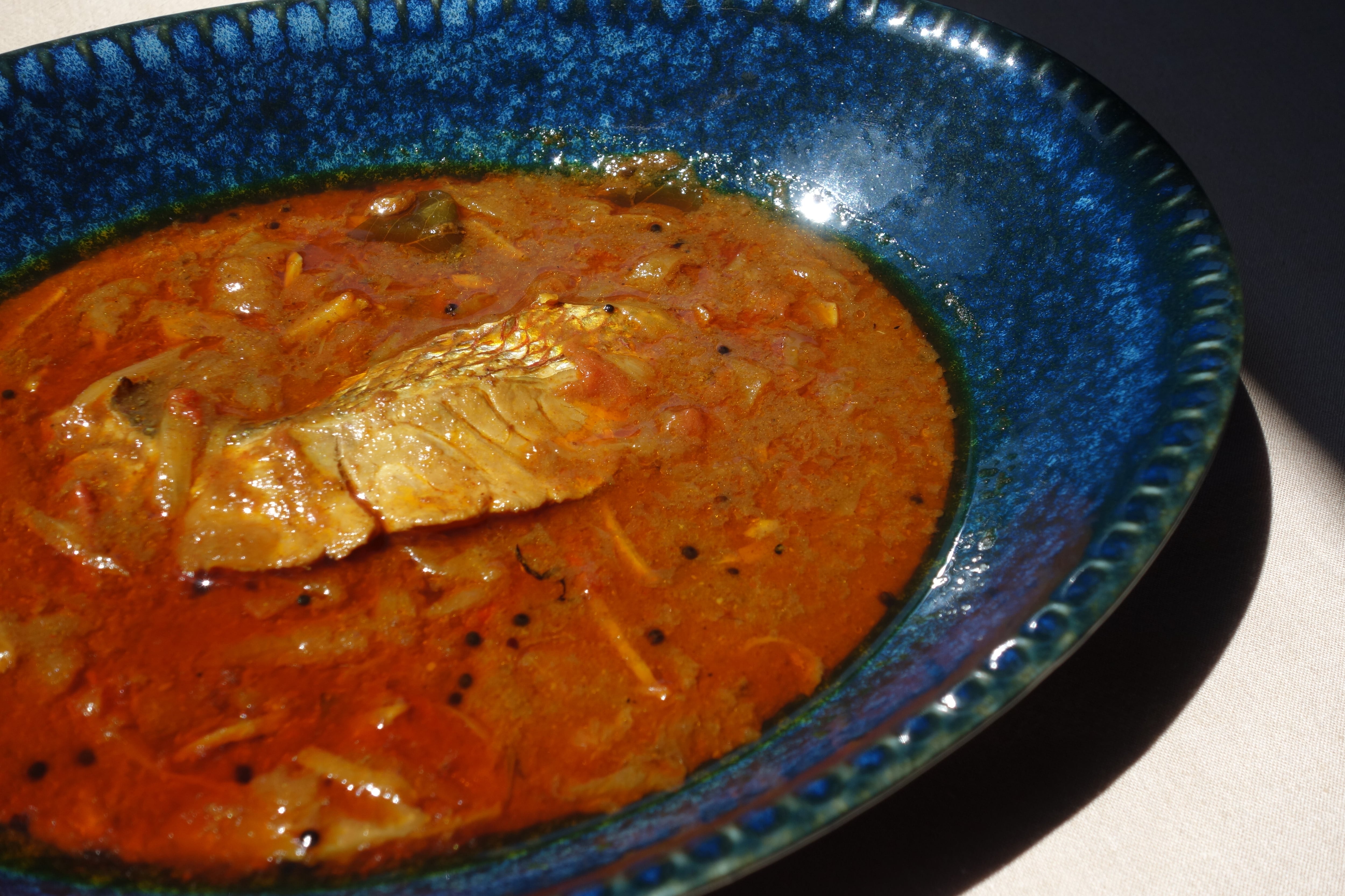 タマリンドの酸味と玉ねぎの甘味のスープに、地元鮮魚店で仕入れた新鮮な大きい鯛の切り身が入ってます