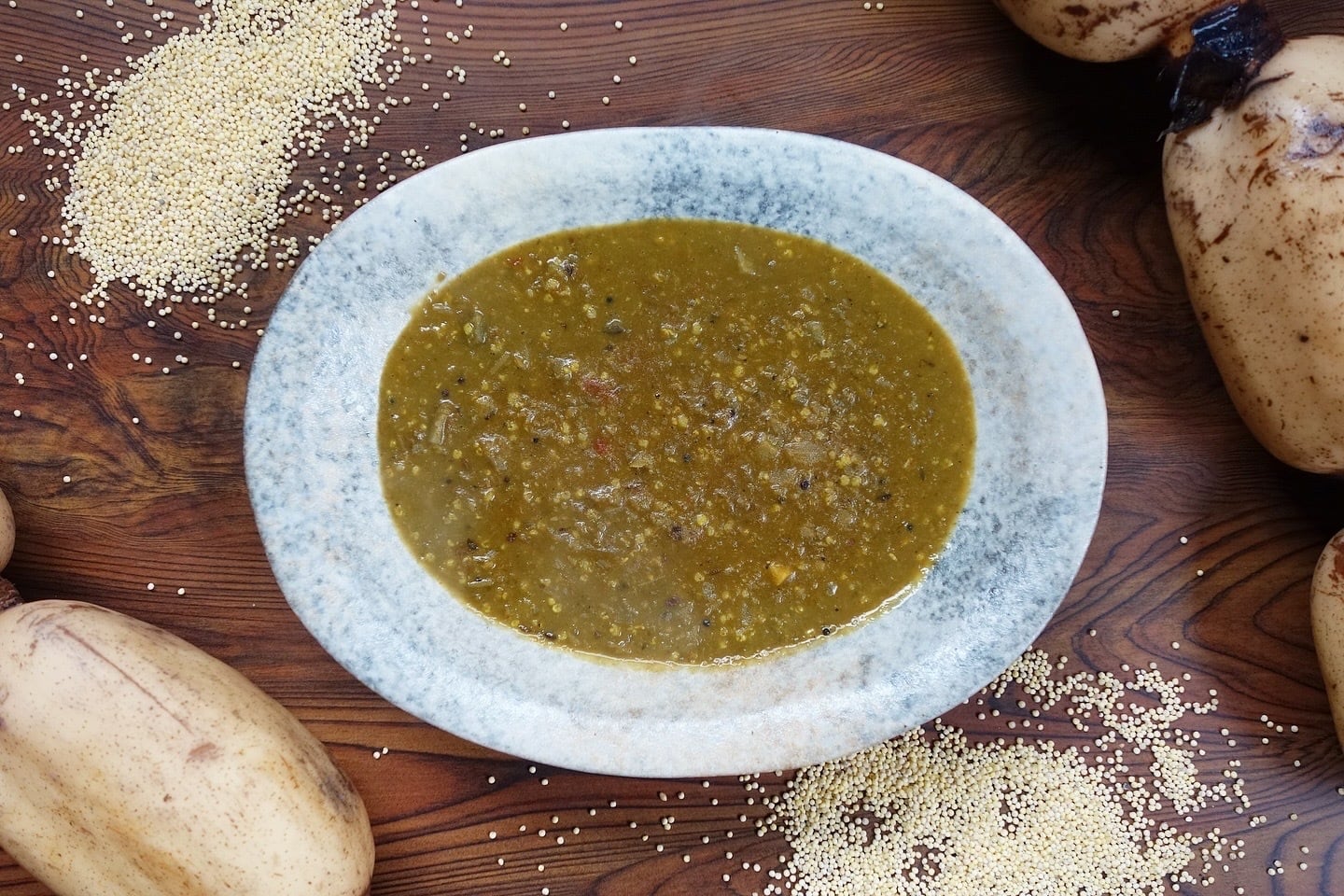 れんこん由来のデンプンとレンズ豆、もちきびで自然なとろみが楽しめます