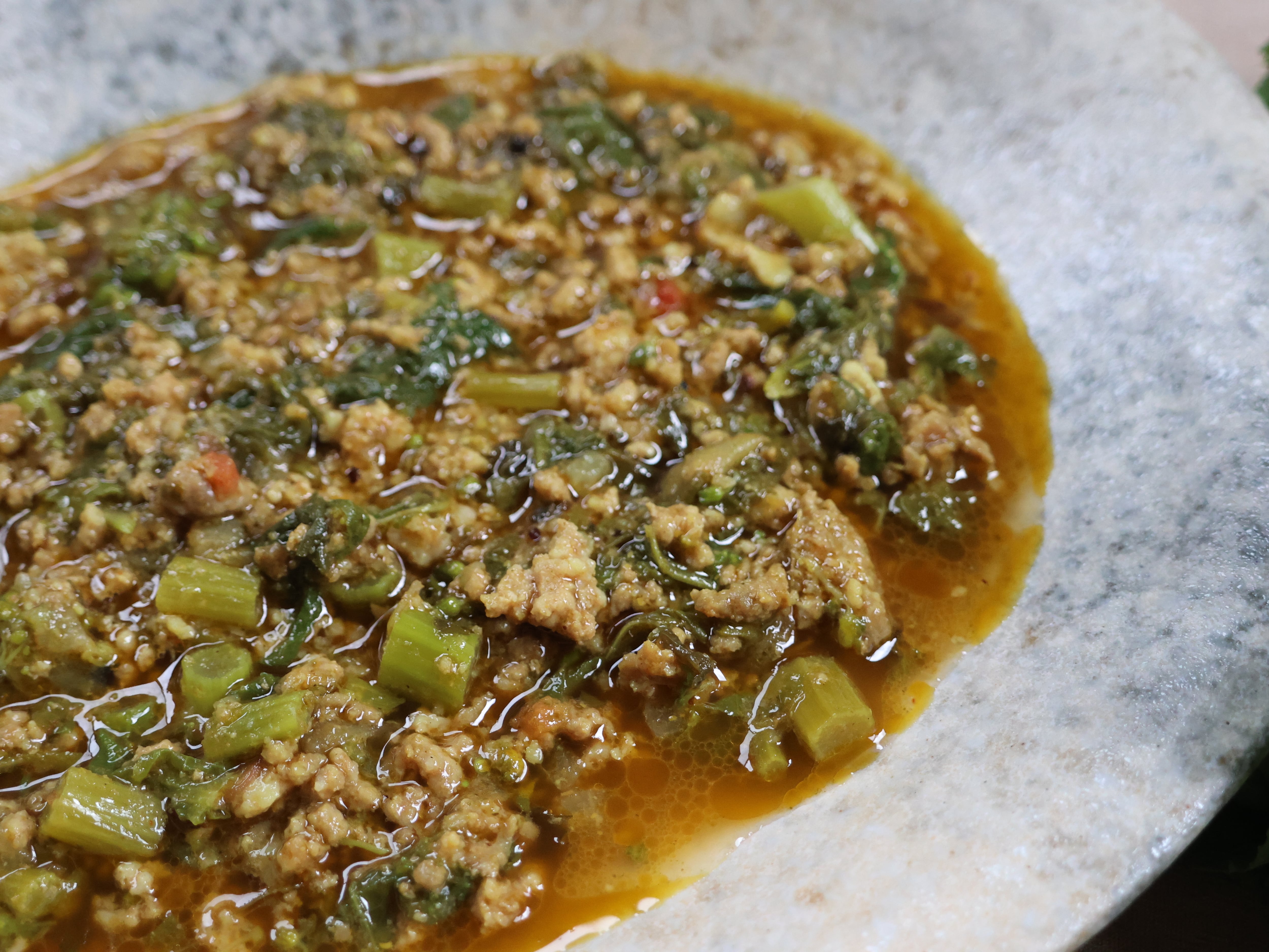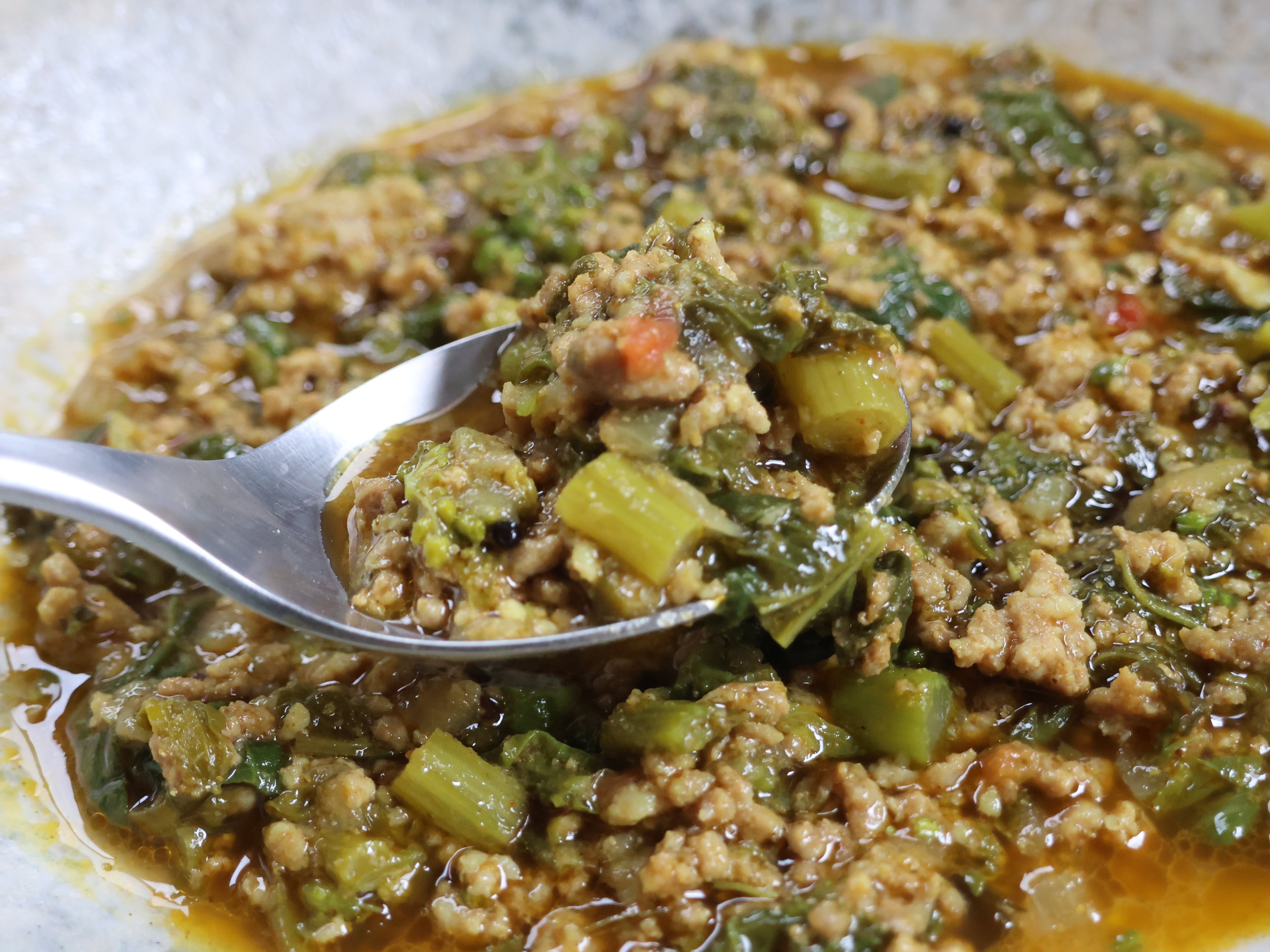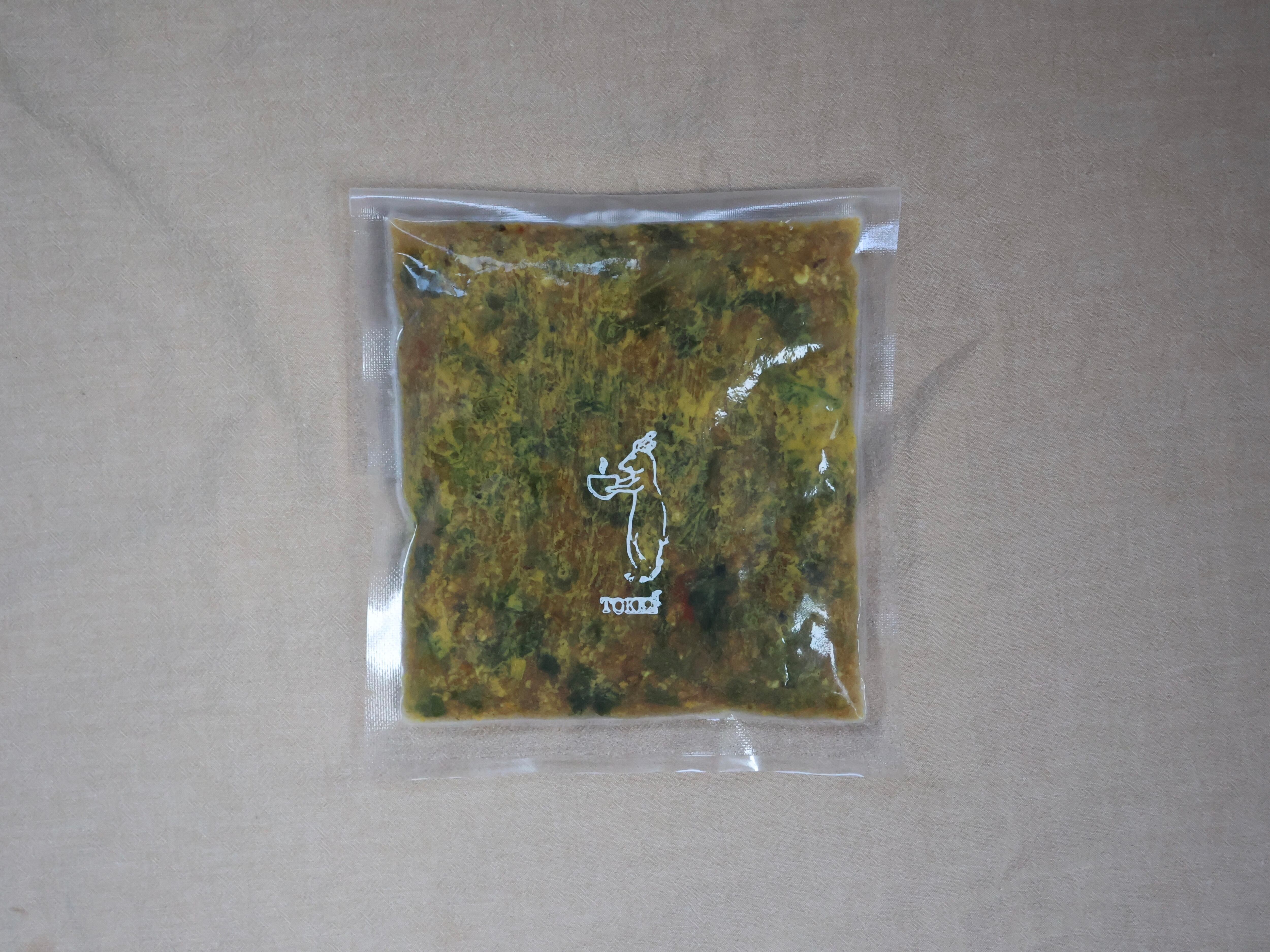 豚肉(国産)、菜花(千葉県)、玉ねぎ、トマト、青唐辛子、にんにく、生姜、香辛料(コリアンダー、ターメリック、クミンなど)、岩塩