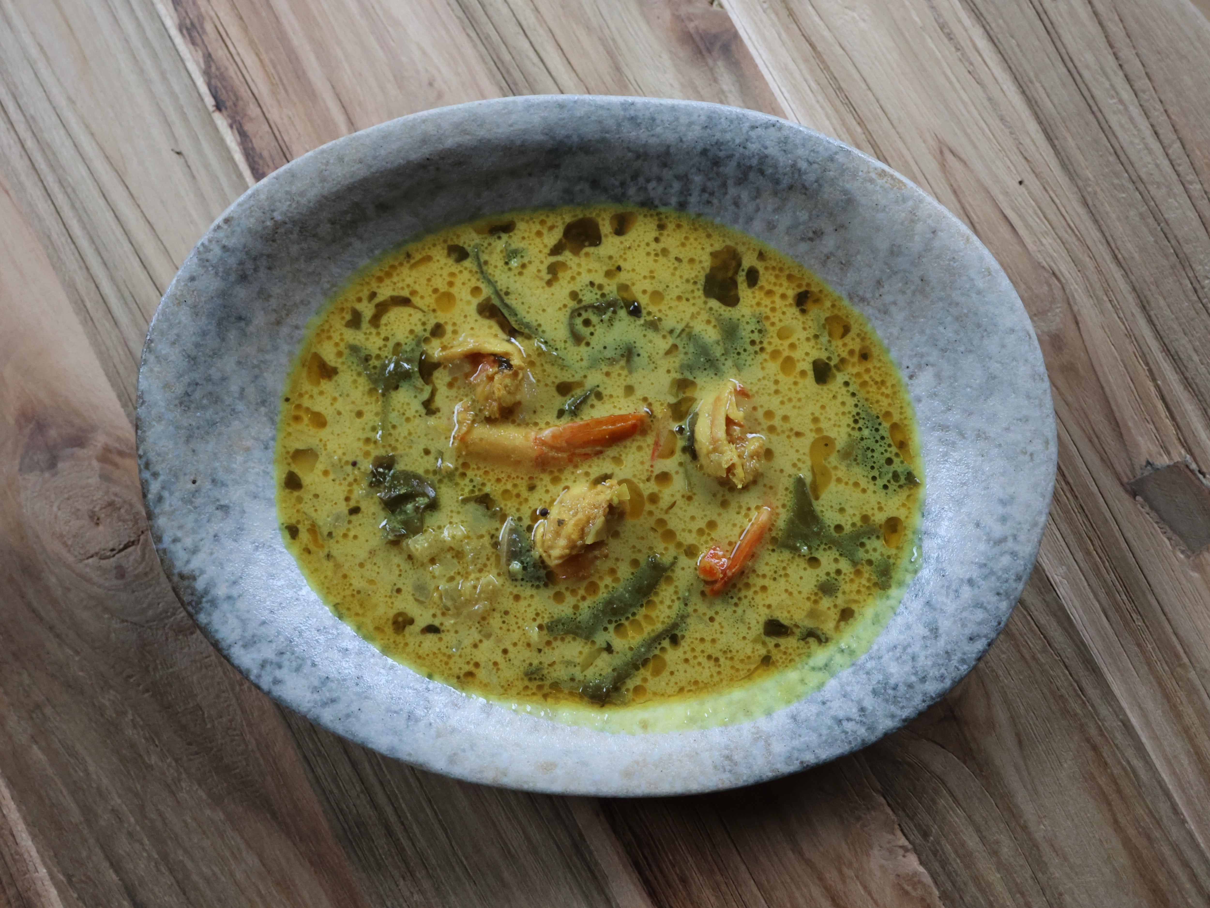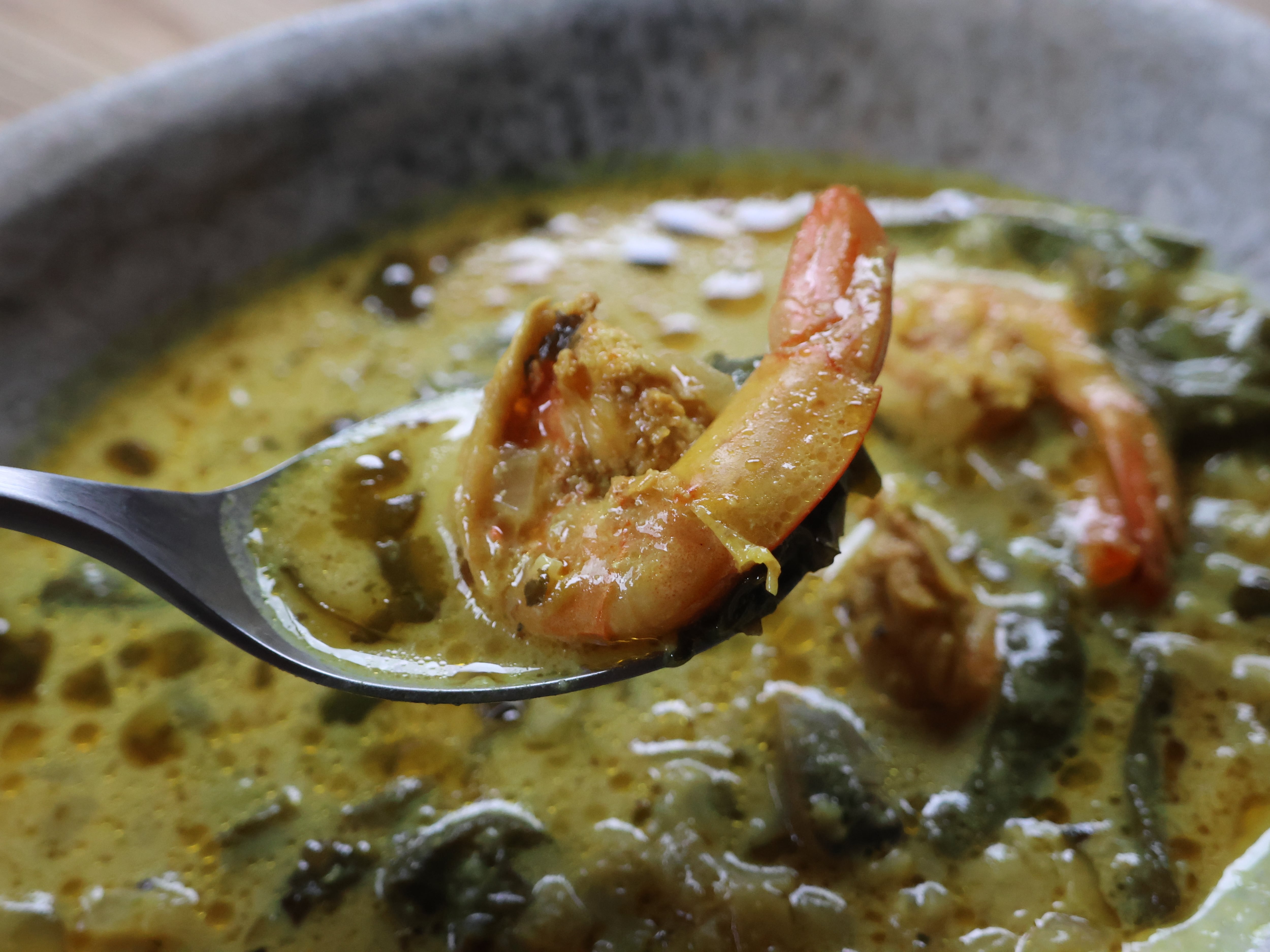 のらぼう菜とマッシュルームのエビカレー